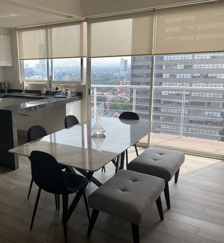 Cuenta con 2 elevadores inteligentes, áreas comúnes,eficiente consumo de energía, instalaciones y acabados de vanguardia , excelente ubicación y alta seguridad.