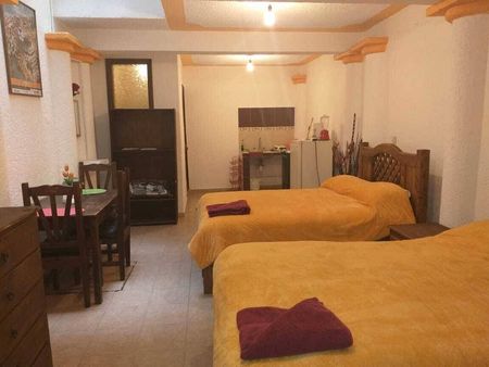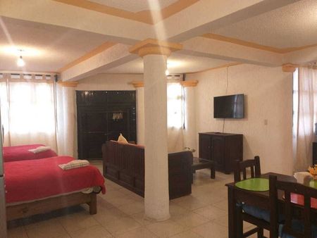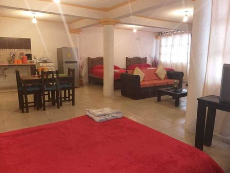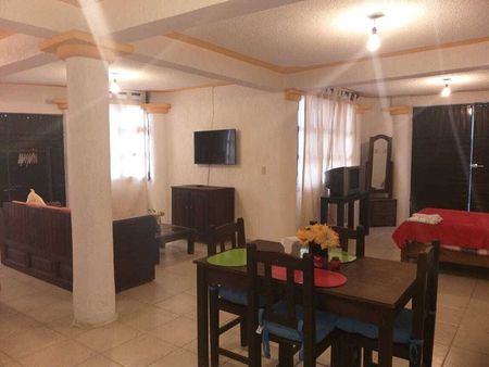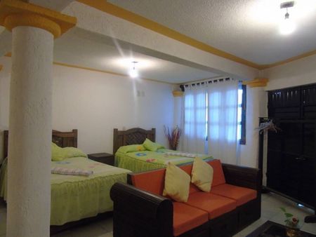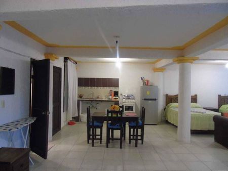 segundo y tercer nivel: 4 departamentos (2 departamentos en cada nivel). Los departamentos cuentan con 2 recamaras, sala, cocina, comedor, estancia y baño. Equipados con pantallas, cable y wifi. Estufa y refrigerador.