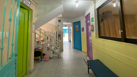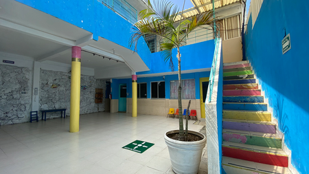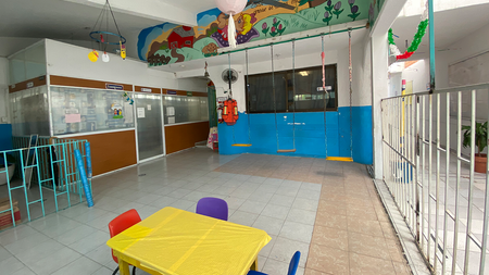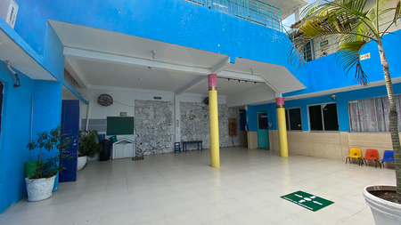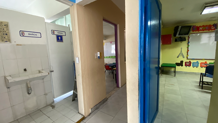 Cuenta con patio, área de recreo, salón de juegos y 12 aulas: