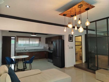 Loft de sala comedor, cocina integral, 1 baño completo, recámara amplia, patio con pérgola, área para asador