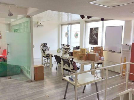 1er piso: Oficina amplia con privados, área de trabajo, cocineta, y baños además una terraza en la parte de atrás.