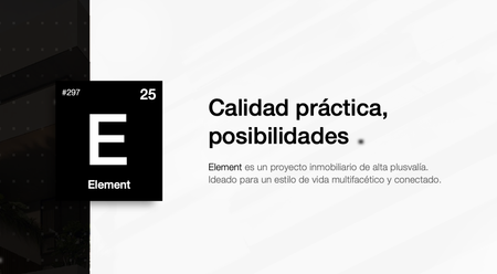 Element es un proyecto inmobiliario de alta plusvalía. Ideado para un estilo de vida multifacético y conectado.