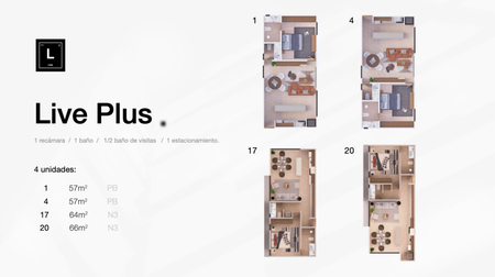 2 recámaras / 2 baños / 1/2 baño de visitas / 2 estacionamientos.