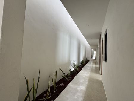 • Pasillo distribuidor con jardinera e iluminación natural (tragaluces)