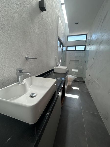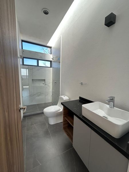 Recámara principal con walk-in closet y baño completo con granito y cristal templado