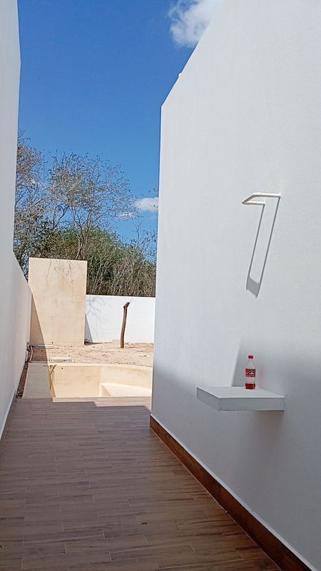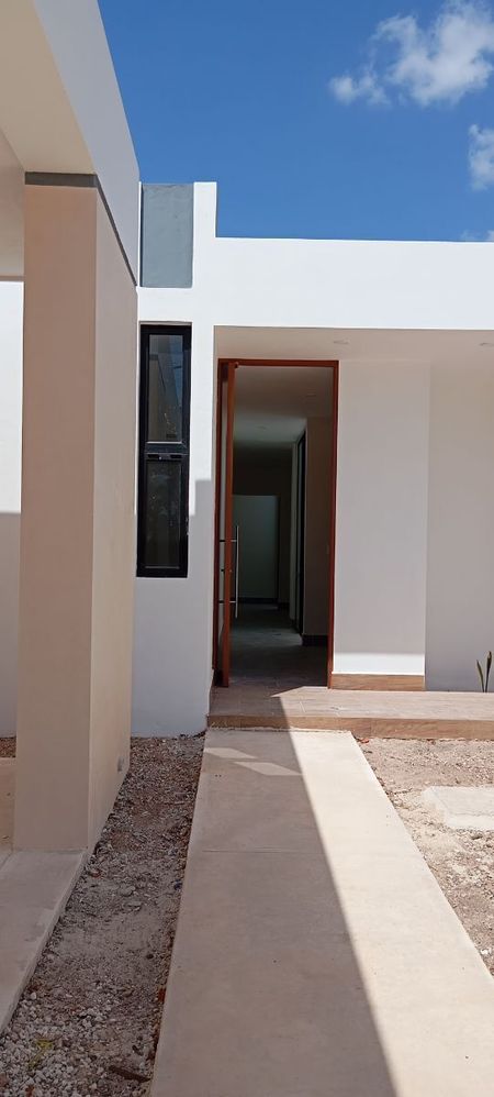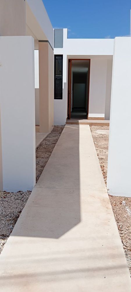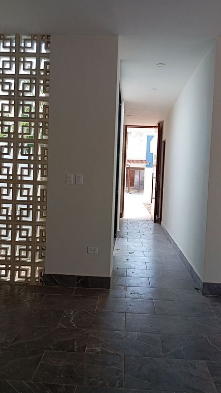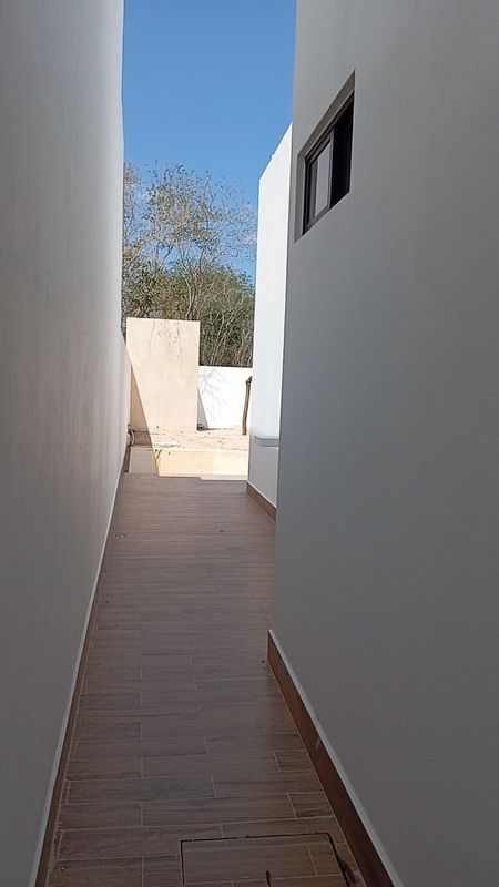 La cocina tiene acceso, desde el interior de la casa y desde la cochera techada para 4 vehículos a través del pasillo que atraviesa los 40m de fondo que ofrece está excelente propiedad en el bello , arbolado y pintoresco Cholul, en Mérida.