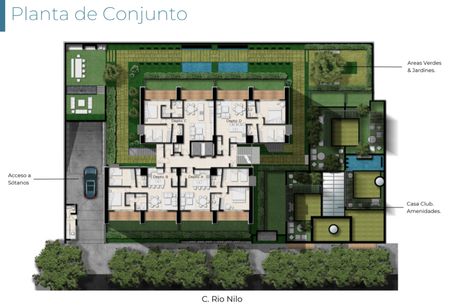 Proyecto en Rio Nilo colonia Cuauhtemoc un desarrollo de 19 niveles y 70 departamentos. Con jardines naturales, cava de vinos, salón zen, coworking, zona de asadores, cargas para auto eléctrico, biblioteca y vigilancia 24/7.