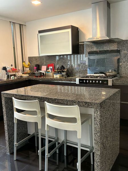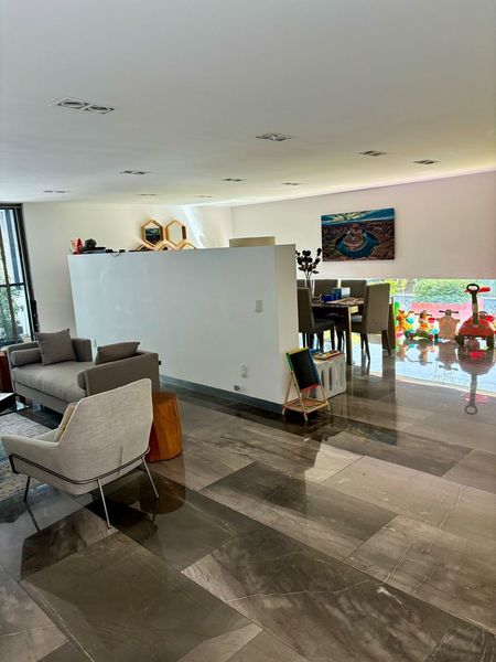 Amplios espacios con mucha luz, gran terraza qué se integra desde la sala comedor, sala de TV, cocina con cubiertas de granito e isla central, 3 amplias recámaras con vestidor cada una y baño propio, dos cuartos de servicio y bodega.