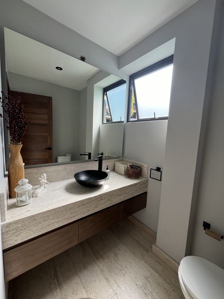 Con muy buenos acabados y buen distribuida, en el primer nivel, se encuentra la sala comedor con salida a la terraza y una extraordinaria vista despacho con baño de visitas amplia, cocina con cubiertas de granito, despensa, desayunador o Family y área de lavado.