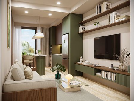 Estos hermosos departamentos de 2 recámaras y 1 baño son perfectos para rentas vacacionales o para convertirse en su hogar en el paraíso. Ofrecen un diseño de planta abierta, balcón, pisos de mármol travertino y acabados de primera calidad, duraderos y fáciles de mantener. Usted y sus huéspedes amarán el increíble rooftop con alberca y área de camastros, bar con asador y un espacio abierto de wellness, ideal para relajarse o convivir. Estos departamentos se ofrecen sin amueblar pero equipados con aire acondicionado.