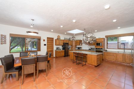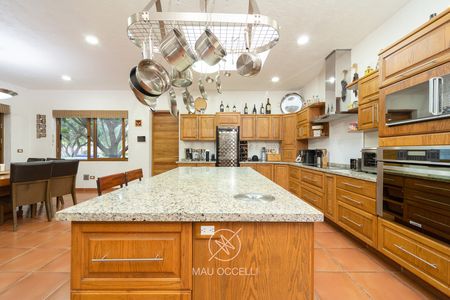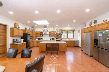 Cocina de 100m2 super equipada con lo mejor del mercado y amplio espacio para desayunador adyacente y despensa y bodega de vajillas y mantelería independiente.