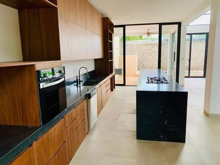 La casa cuenta con diseño de iluminación adecuada a las necesidades de una vivienda light healthy, está equipada con acabados de primera calidad (aires acondicionados inverter, pisos de porcelanato de gran formato, maderas tzalam, cocina completamente equipada, vidrios templados, accesorios de smart home: Amazon Ring video Doorbell, Amazon Echo compatibles con Alexa, CCTV y demás amenidades) cuenta con transformador de 25,000 kva de media a baja tensión