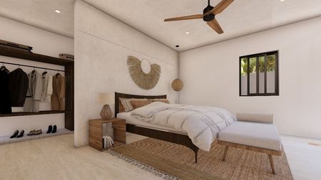 • Recámara principal con vestidor y baño completo privado, adaptado con accesos amplios para personas con movilidad reducida, y salida directa hacia la alberca.