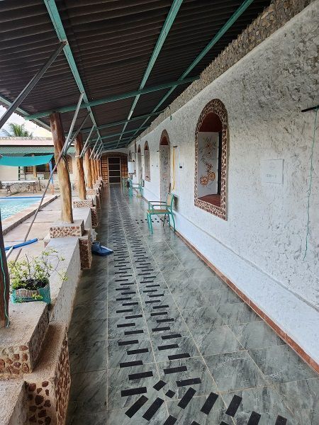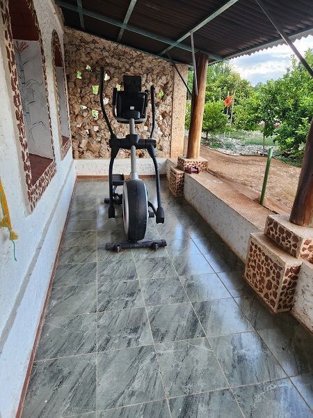 La casa es una construcción hecha de piedra con mucho estilo, tanto las habitaciones como la sala tienen mucho detalle con estilo Rustico. Tiene un amplio pasillo que conecta con toda la casa y la piscina. La propiedad tiene en la parte de atrás un amplio lugar para establecer más construcción o construir un gran Jardín, considerando los árboles frutales; como Limón Persa y algunas plantas de coco.; Además que ya hay una gran Piscina que enmarca el lugar y resulta imprescindible porque en la zona hay abundante calor en primavera y verano.