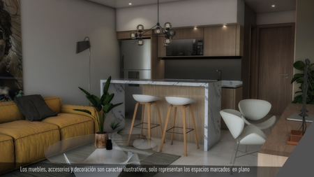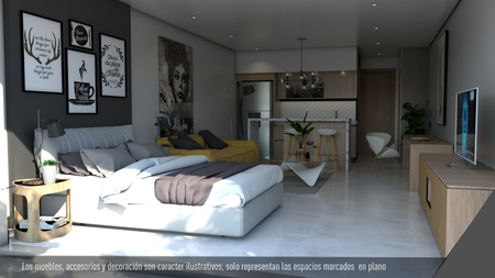 • Espacios: Una amplia habitación con diseño moderno, baño completo, cocina equipada y sala de estar.