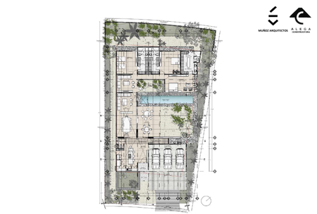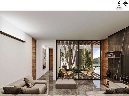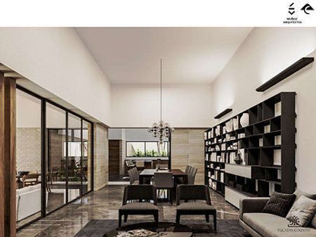 • Fachada exterior de marmol travertino y acabados interiores de marmol y