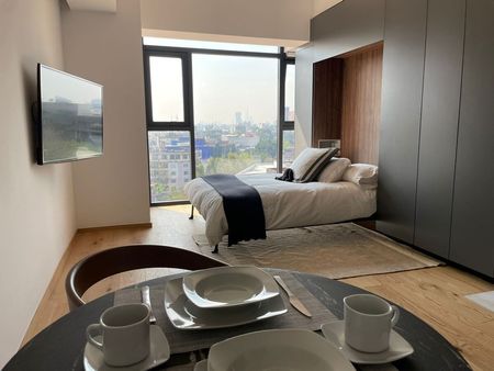 Precioso estudio nuevo en renta en el corazón de Roma Norte con 37m2, ubicado a solo 2 calles de Glorieta de Cibeles, rodeado de la vida de barrio que Roma Norte ofrece.