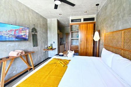 Disfruta de la comodidad, estilo y funcionalidad en este moderno estudio ubicado en el segundo piso del exclusivo condominio Tuk Tulum. Diseñado para viajeros que buscan estancias largas con todas las facilidades, este espacio es ideal para rentas mensuales, de 6 meses o hasta un año.