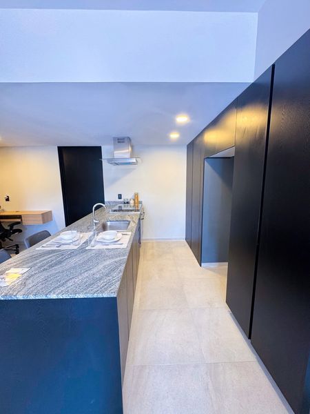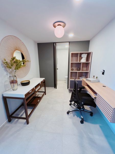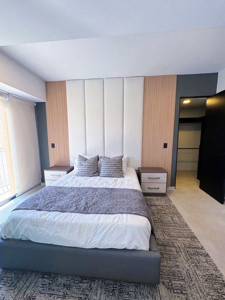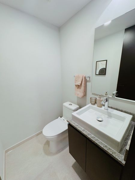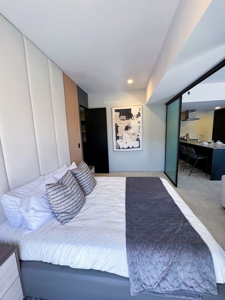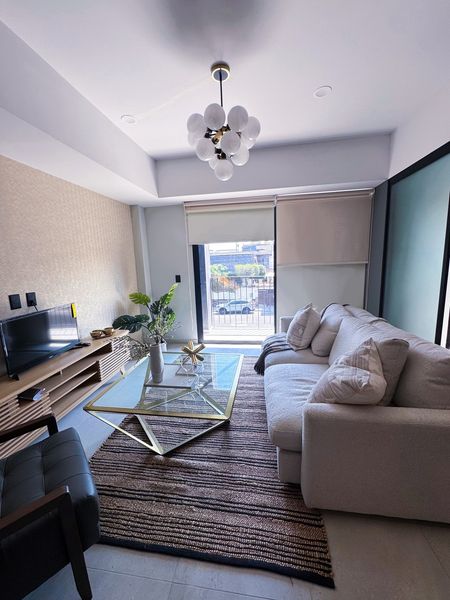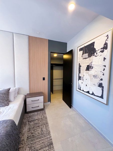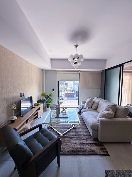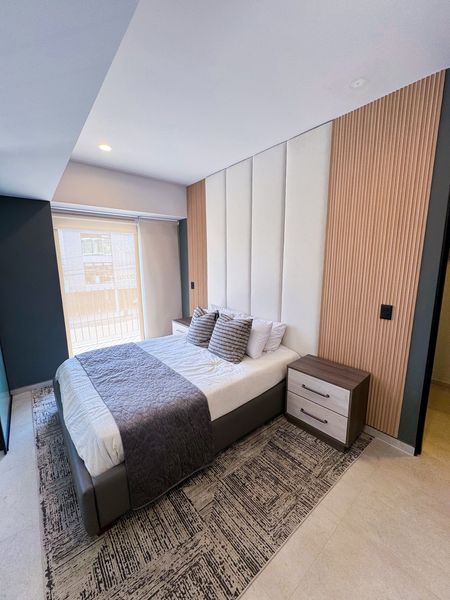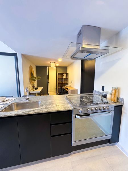 1 recámara, amplio closet, 1 1/2 baño, 1 cajón de estacionamiento, totalmente amueblado, dos balcones, cocina integral equipada con barracubierta de cuarzo.