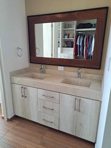 * Planta alta: recámara principal con vestidor; baño completo con 2 lavabos y terraza; 2 recámaras secundarias; baño completo compartido.