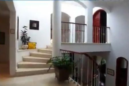 La gran entrada con señorial escalera espiral abre elegante vida formal con vistas excepcionales a los amplios terrenos
