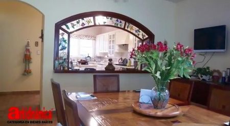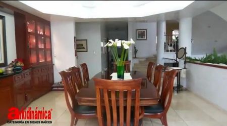 Generoso comedor formal con excelente iluminación, habitación agradable invita a comer mientras gozan de su ambiente. Vitrina empotrada añade elegancia a cada reunión.