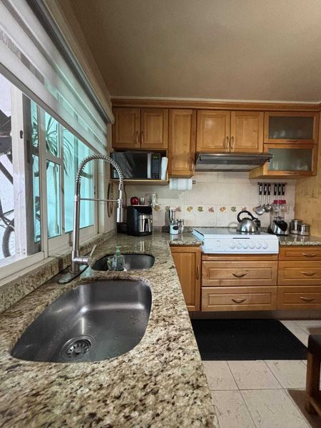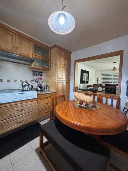 PRIMER NIVEL: Cochera amplia para dos carros (opción a tres) con portón, medio baño, Sala-comedor, Cocina con barra, Terraza, y Recamara con baño completo.