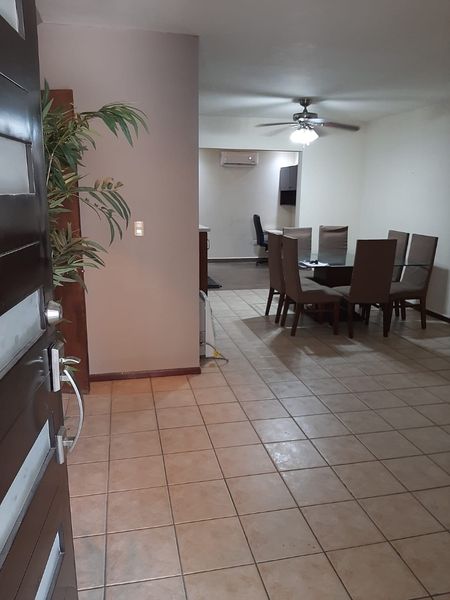 En el interior, encontrarás una sala, un comedor y una oficina con iluminación de plafón de luz indirecta, lo que crea un ambiente acogedor y elegante. La cocina está equipada con gabinetes de madera sólida, ofreciendo durabilidad y estilo.