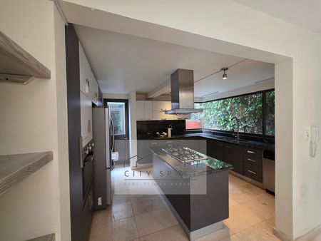 Cuenta con un salón de usos múltiples o departamento con entrada independiente que da al jardin . Esta equipado con cocina, tiene espacio para sala, comedor, 2 recámaras, 1 baño completo, vestidor, área de lavado y salida al jardín.