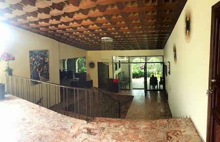 Cuenta con 2,000 m2 de terreno y 850 m2 de construcción, con 4 recámaras, cada una con su baño, 2 de ellas ubicadas en el interior de la casa, la principal con grandes espacios y una terraza, la segunda con balcón, y 2 lofts en la parte de atrás con entrada independiente, amplio hall recibidor, amplísima sala con chimenea, gran comedor, antecomedor, family room con chimenea y un gran ventanal a doble altura, medio baño, cocina integral, cava, 2 terrazas, área de lavado, cuarto de servicio, 4 bodegas y un estacionamiento mínimo para 12 autos.