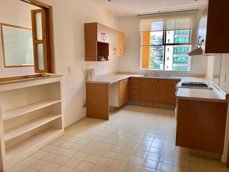 Excelente departamento en Interlomas cuenta con una excelente distribución y buenos acabados, sala y comedor muy amplios y luz natural, cocina integral amplia, cuarto de tv, la recámara principal cuenta con baño propio, vestidor y un pequeño balcón. cuarto de servicio, área de servicio y 2 lugares de estacionamiento.