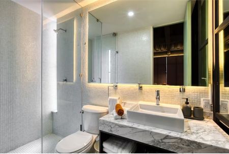 - es una recamara con un baño completo