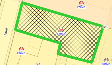 Medidas: Frente 13.75 metros y termina en 18.70 metros. Por ambos lados mide 40.50 y 45.10 metros respectivamente.