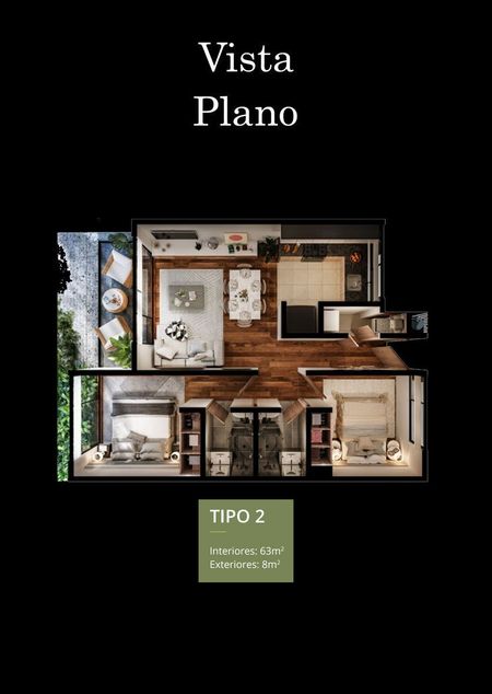 Todos cuentan con dos recámaras con closet, 2 baños completos, amplia sala comedor y cocina de estilo abierto, además de su área de lavado. Las amenidades se encuentran en la parte superior y encontramos el área de co-working, sala de juntas, sala, espacios lúdicos para los más pequeños, Gimnasio con área de cardio y zona de peso integral, zona de espera y juegos infantiles al aire libre. Todo para que tengas una muy agradable estancia.
