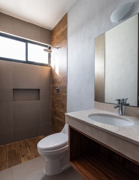Carpintería, jardinería, AC y cristales templados en baños con costo adicional.