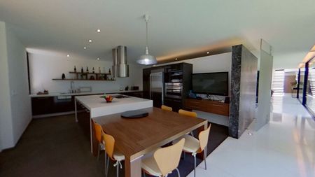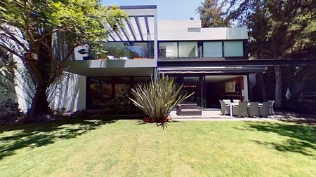 La casa cuenta con un área de 845 m2 construidos, 4 recámaras con baño y vestidor, 2 families, sala y comedor, bar, cava, 3 bodegas, 6 lugares de estacionamiento, gran terraza y amplio jardín.
