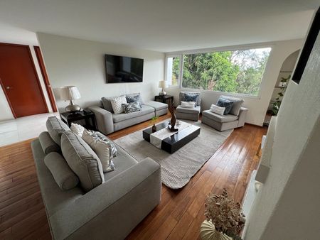 La casa se desarrolla en desniveles sobre un gran terreno, cuenta con espacios cómodos y amplios, adaptables a diferentes intereses para la familia. Vastas habitaciones, terrazas, jardines, gimnasio, alberca, áreas de servicio y mucho más. Disfrutaras de varios lugares para estar al aire libre leyendo, trabajando,jugando o viendo una agradable puesta de sol.