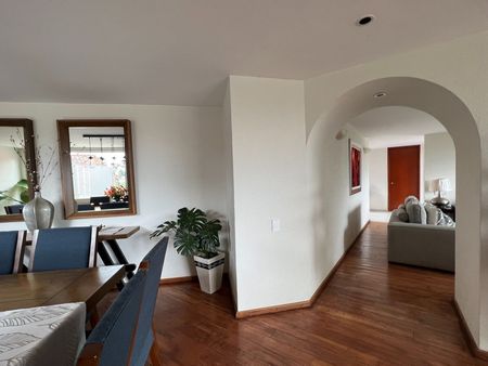 • Sala y comedor con piso de duela de madera de buena calidad. Esta área cuenta con amplias ventanas que permiten la entrada de luz natural y bella vista al exterior. Adicionalmente tiene una chimenea en esta área.