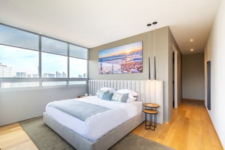 La propiedad es un apartamento diseñado para proporcionar la máxima comodidad y funcionalidad. Cuenta con tres recámaras, cuatro baños completos y un medio baño adicional, complementados con dos espacios de estacionamiento bajo techo. Este espacio es una construcción prevista para finalizar en 2025, asegurando que sea una inversión moderna y libre de hipoteca, con la posibilidad de adquisición mediante crédito o pago en efectivo.