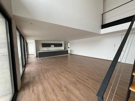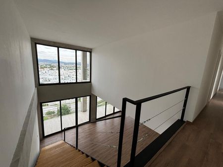 Construido en 2 niveles, con cristales panorámicos, doble altura, área social abierta, cocina con barras de piedra natural, cuarto de lavado, cuarto de servicio, balcón de 60 metros, en planta alta: tres recámaras con baño completo clósets y la mejor vista!