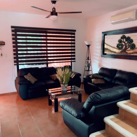 -Recamara principal ampliada, cuenta con terraza con vista al parque, techo de bóveda catalana, baño completo con cancel, closet vestidor y closet adicional, aire acondicionado y ventilador de techo
