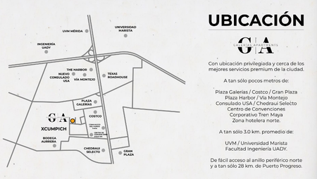 Cerca de Plaza Galerías, Costco, Gran Plaza, Plaza The Harbor, Vía Montejo, Consulado USA, Centro de Convenciones Siglo XXI, Chedraui, Corporativo Tren Maya, Zona Hotelera Norte, Universidades como UVM, MARISTA, Facultad de Ingeniería .