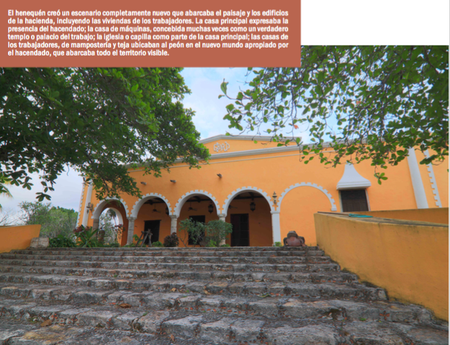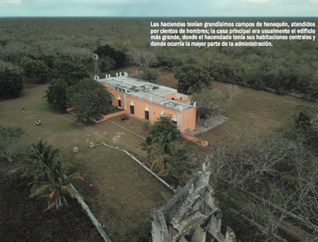 La mayoria de las haciendas yucatecas en el siglo XIX producian soga de henequen, una planta variedad del cactus de agave, la cual era exportado por la creciente industria de transporte.