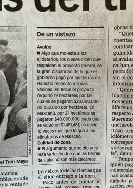 o Nota: Comparado con $150 MXN/m² pagados por el gobierno hace 5 años por tierras ejidales sin escrituras para el Tren Maya. Los precios en Maxcanu están en alrededor $300 pesos el mt2.