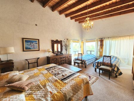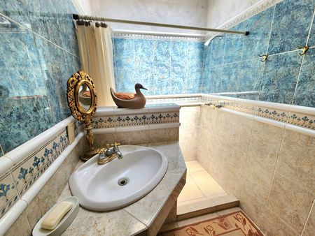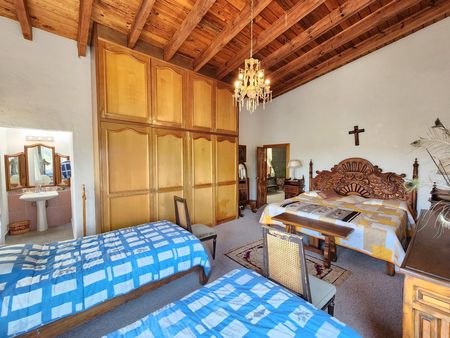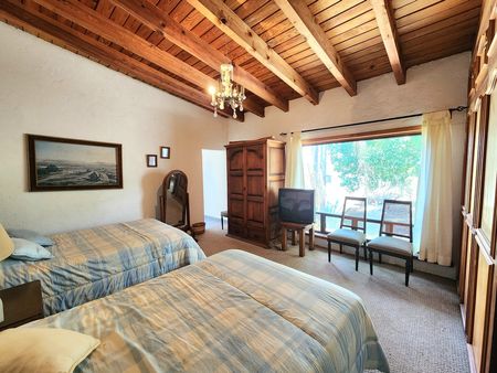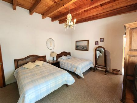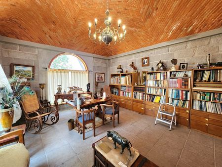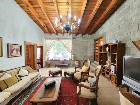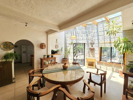 La casa, un refugio de comodidad, presenta 3 recámaras, 5 baños, y una versátil sala de TV o estudio. La cocina integral, equipada para inspirar al chef en ti, se complementa con espacios amplios de sala y comedor. La recámara principal es un santuario privado con baño en suite y vestidor, mientras que las recámaras secundarias, con sus closets elegantes, ofrecen confort y funcionalidad. Además, la amplia e iluminada biblioteca, y el estacionamiento techado para 5 autos, además de un encantador patio interior y trasero de 20 m². Techos con diferentes diseños de bóvedas, puertas y clósets en caoba, acabados de cantera, muros en sillar.