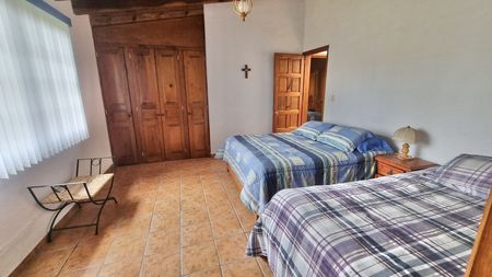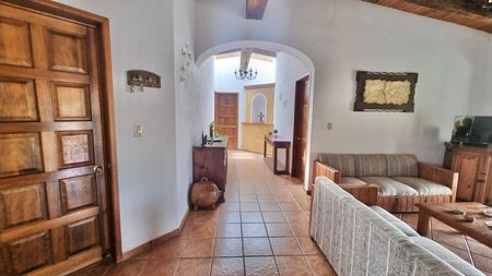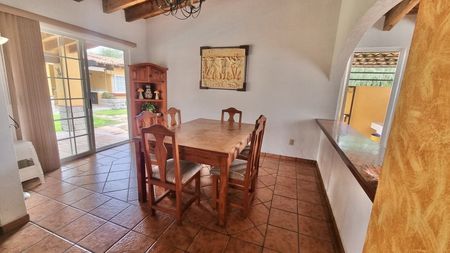 Residencia colonial contemporánea de encanto edificada en dos terrenos. Ubicada en calle interior, apacible en exclusivo fraccionamiento residencial campestre con estricto acceso Controlado y vigilancia 24 horas. La casa goza de una distribución abierta de techos altos a dos aguas. además, de una casa de huéspedes independiente con dos habitaciones, terraza con asador Jardines y piscina. Rodeada de exuberantes jardines ofrece un ambiente tranquilo y espacioso.