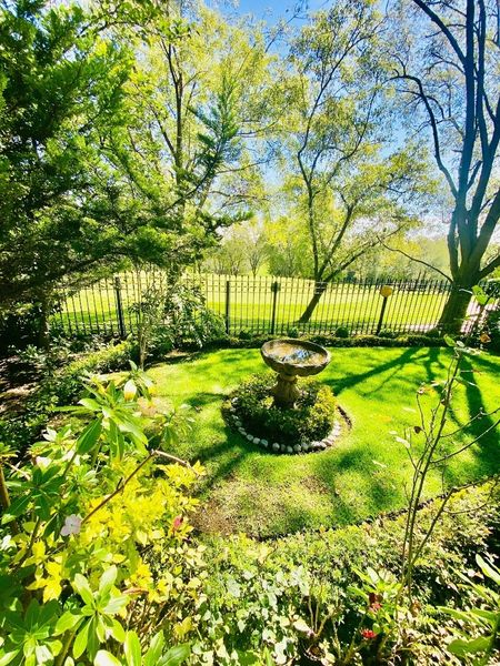 Rodeada de jardines de plantas y flores