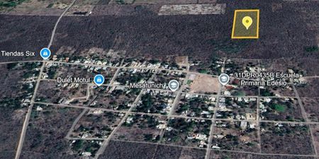A unos metros del pueblo de Mesatunich. Mesatunich es un pueblo en Municipio de Motul, Yucatán.