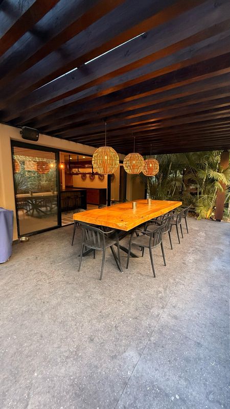 — Terraza comedor y sala exterior, fusionando el interior con un entorno verde espectacular.
