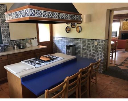Cocina equipada, el dormitorio principal tiene una cama y la segunda tiene dos recamaras individuales, la tercera también dos recamaras individuales, hay un tapanco con dos calmas individuales y cuatro colchones. Cuenta con un bungalow con cama matrimonial y baño individual.